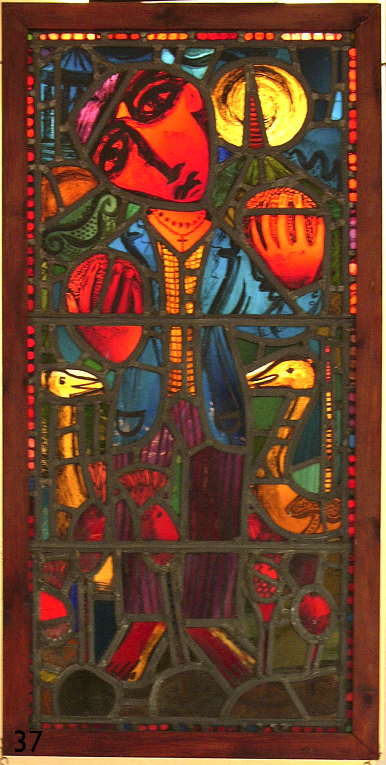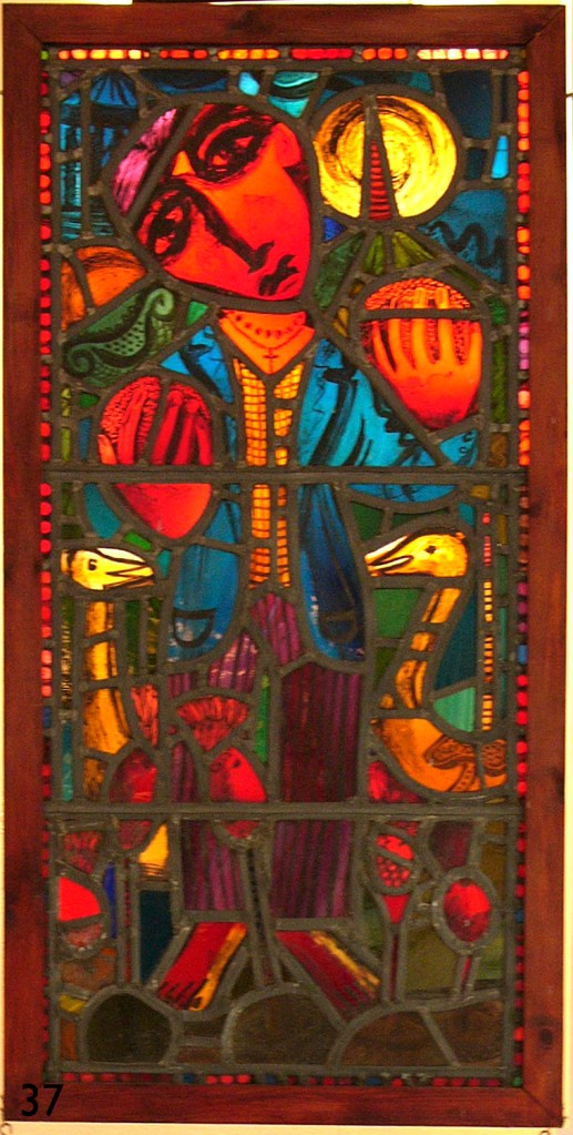 37 Man and Geese stained glass panel. Another exhibition panel unfortunately nothing is known about the subject or the reason the panel was made.