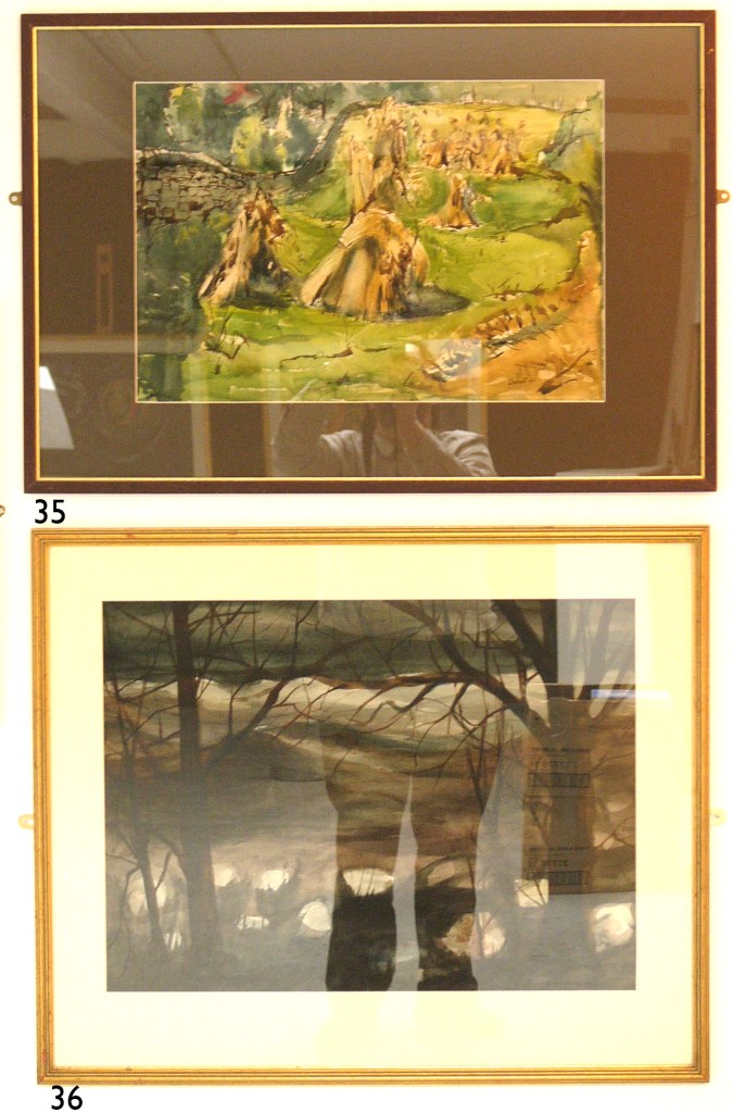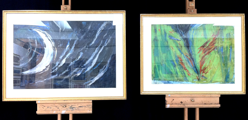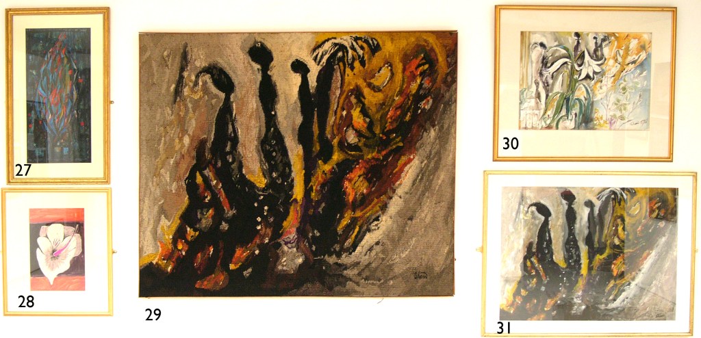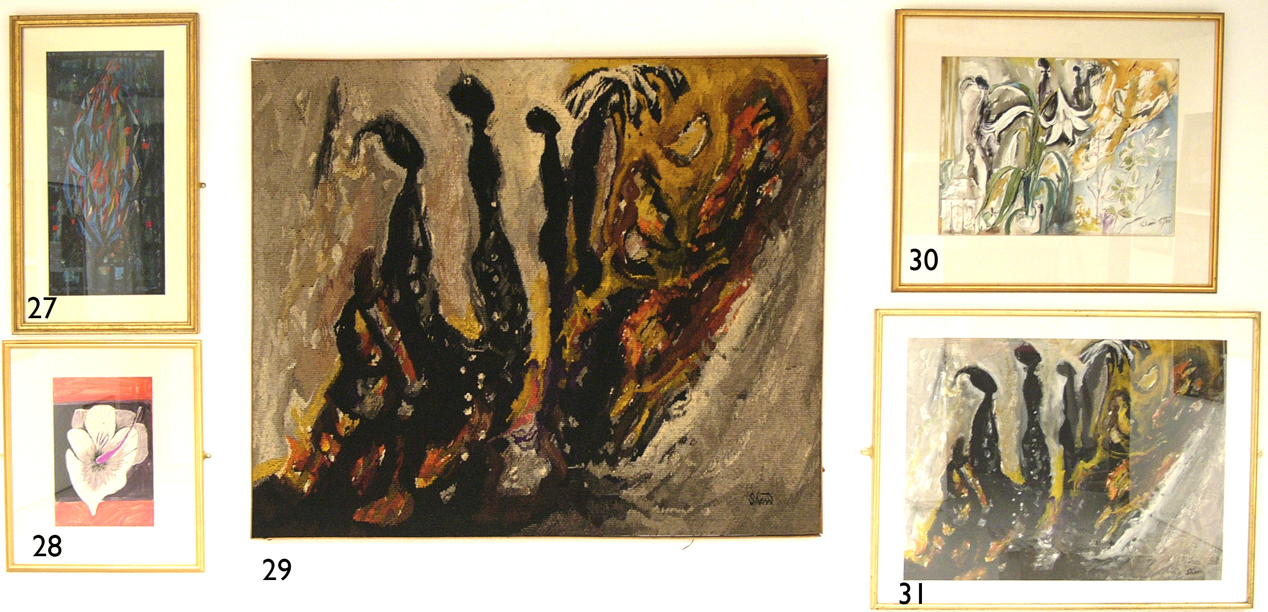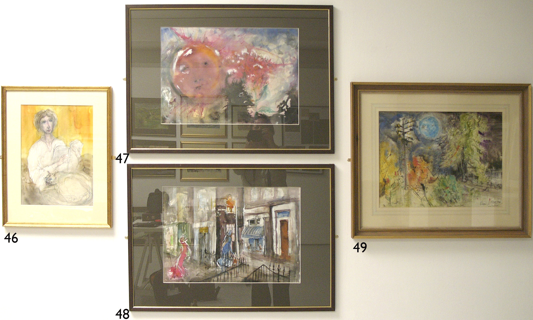 Watercolours remained part of Sax’s work, almost a recreation when away from the loom or stained glass easel. The aspects of abstraction began to permeate this work as some seem to cross the line between watercolour representation and interpretation for tapestry or glass.